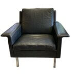 Arne Vodder FH 3332 armchair – designed in 1968 Beautifully well-maintained FH3332 armchair in patinated black leather, with square steel legs. This item will not be shipped, must be picked up in store. Shipping can be arranged for a fee.