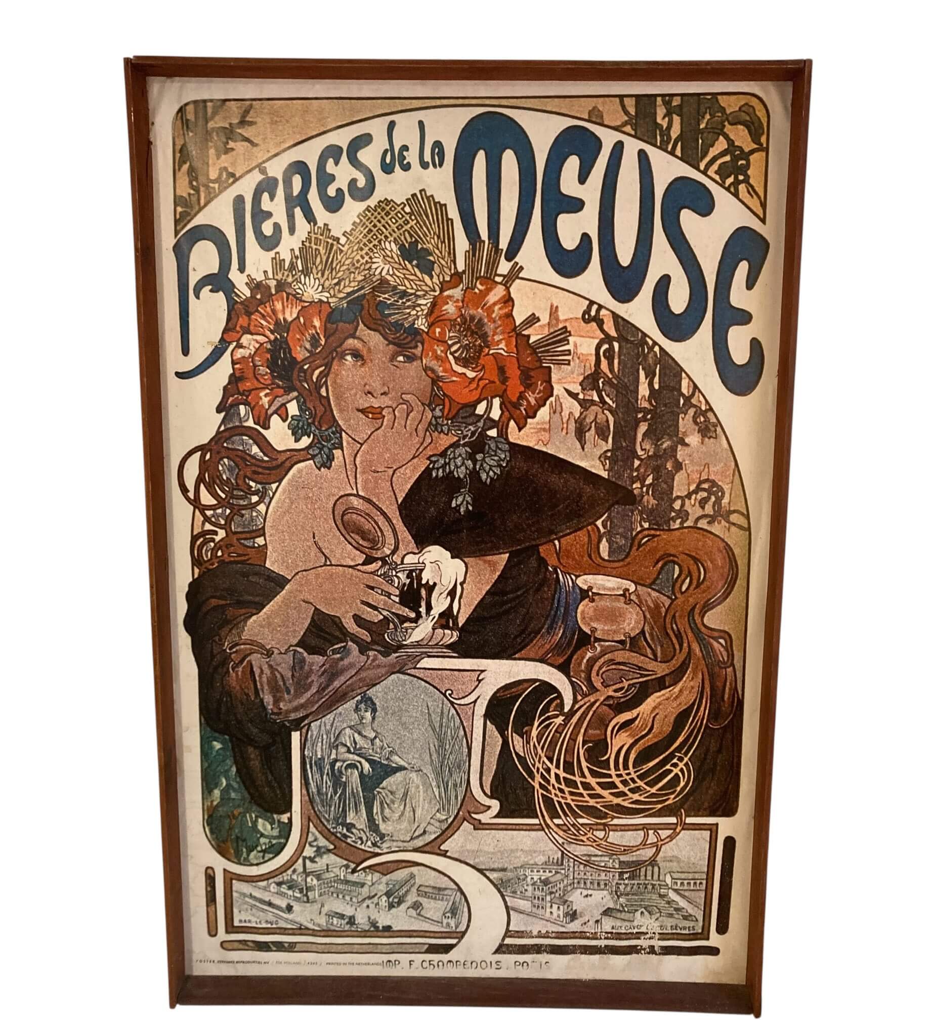 En skøn Art Nuveau plakat, som er sat i træramme og monteret på plade. Der er ikke glas over. Den måler 75 x 50 cm.