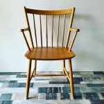 Børge Mogensen J42 for FDB, har stadig det fine gamle stempel under sædet. Har en reparation på armlæn. Er skønt patineret og stabil. 1500kr
