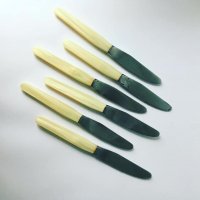 Fin kande med støvede blå lotus blade, og et nøk i kanten i emaljen