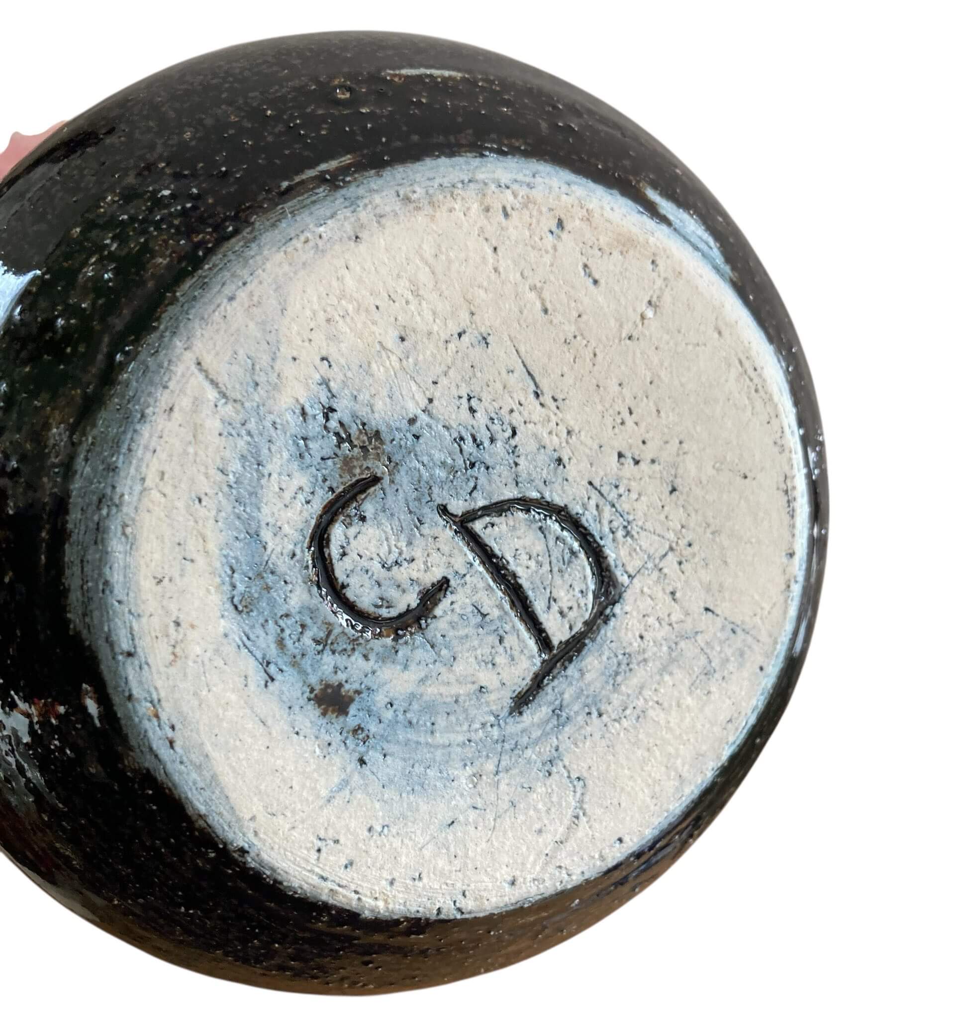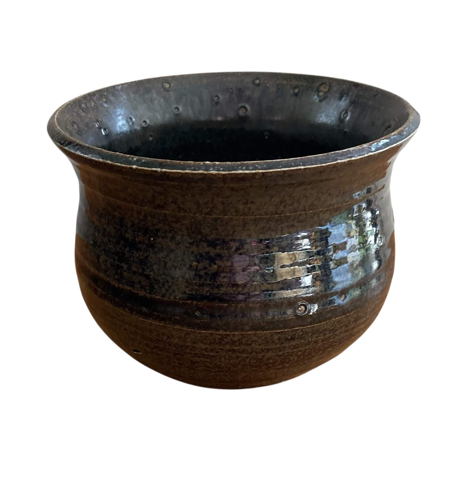 Conni David’s Potte Conni Davids is a Danish female ceramicist.. Davids was apprenticed to Finn Lynggard, where she learned raku firing, among other things, This little brown pot in particular is inspired by Lynggard. It measures 13 cm ø and is 10 cm high.