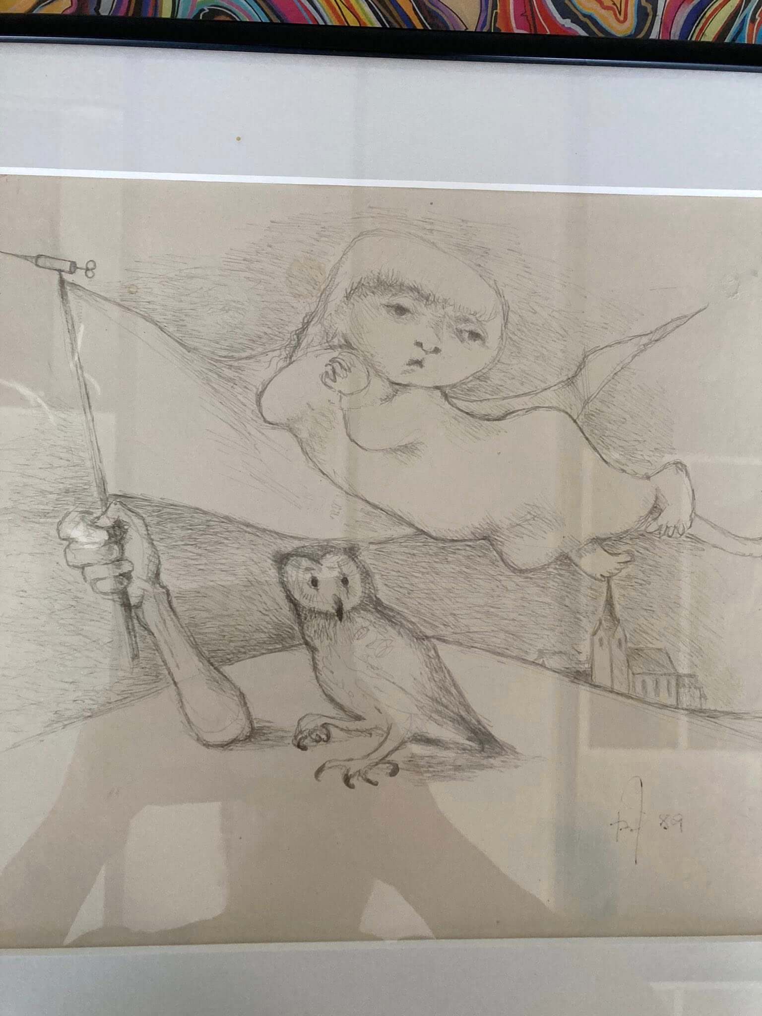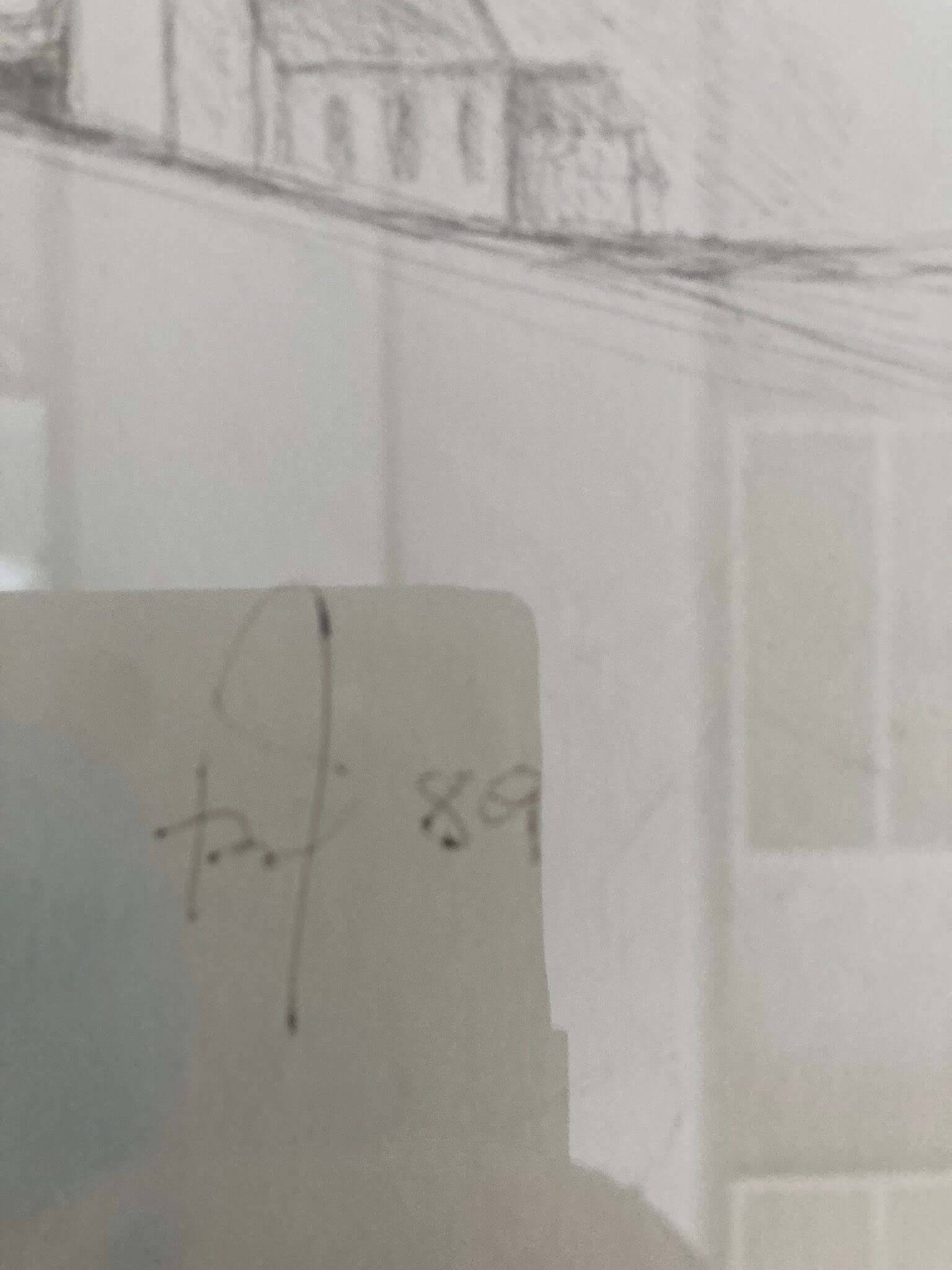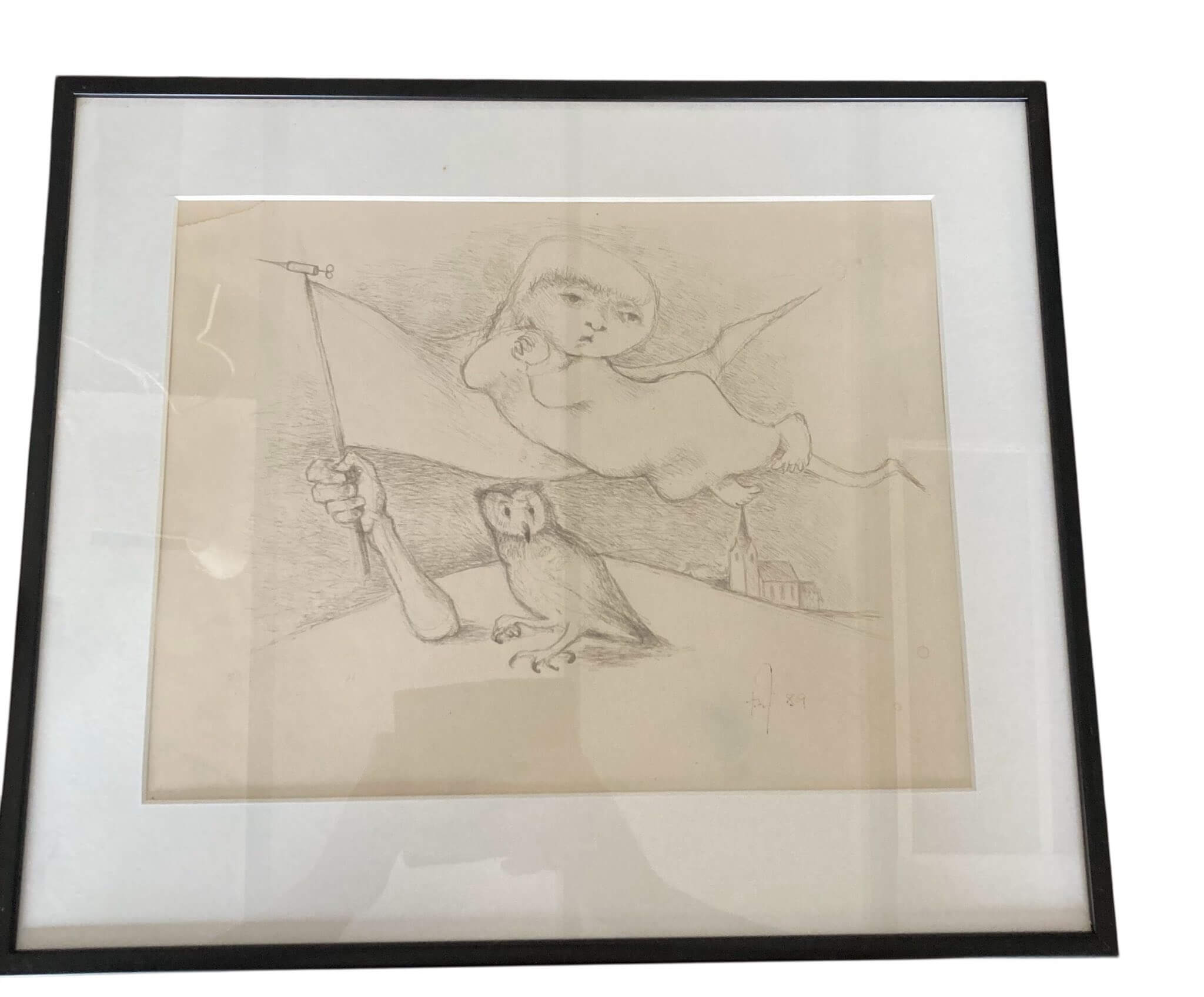 Indrammet i paspartout og med sort ramme, som måler 45,5 x 38,5 cm