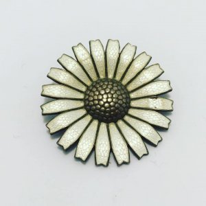 Original Marguerit broche designet af George Jensen for A. Michelsen. Stemplet 925s. Den har en minimal skade i emaljen.