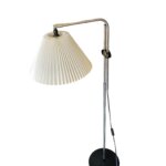 Le Klint model 321 standerlampe. Design Michael Bang. forkromet stål, sort base. Plisseret Le Klint skærm. Justerbar i højden H. 130-155 cm.