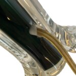 Bordlampe i glas, designet af Poul Kedelv for Flygfors 1970 erne. Den er stribet skiftevis mørk flaskegrøn og klart glas. Den er ca. 30 cm høj uden fatning. Den har et gok/afskrap der hvor ledning går ind, svært at se men man kan mærke det med fingeren.