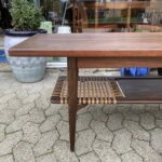 Sofabord i palisander med flethylde. Det måler 153 cm x 55 cm og er 54 cm højt.