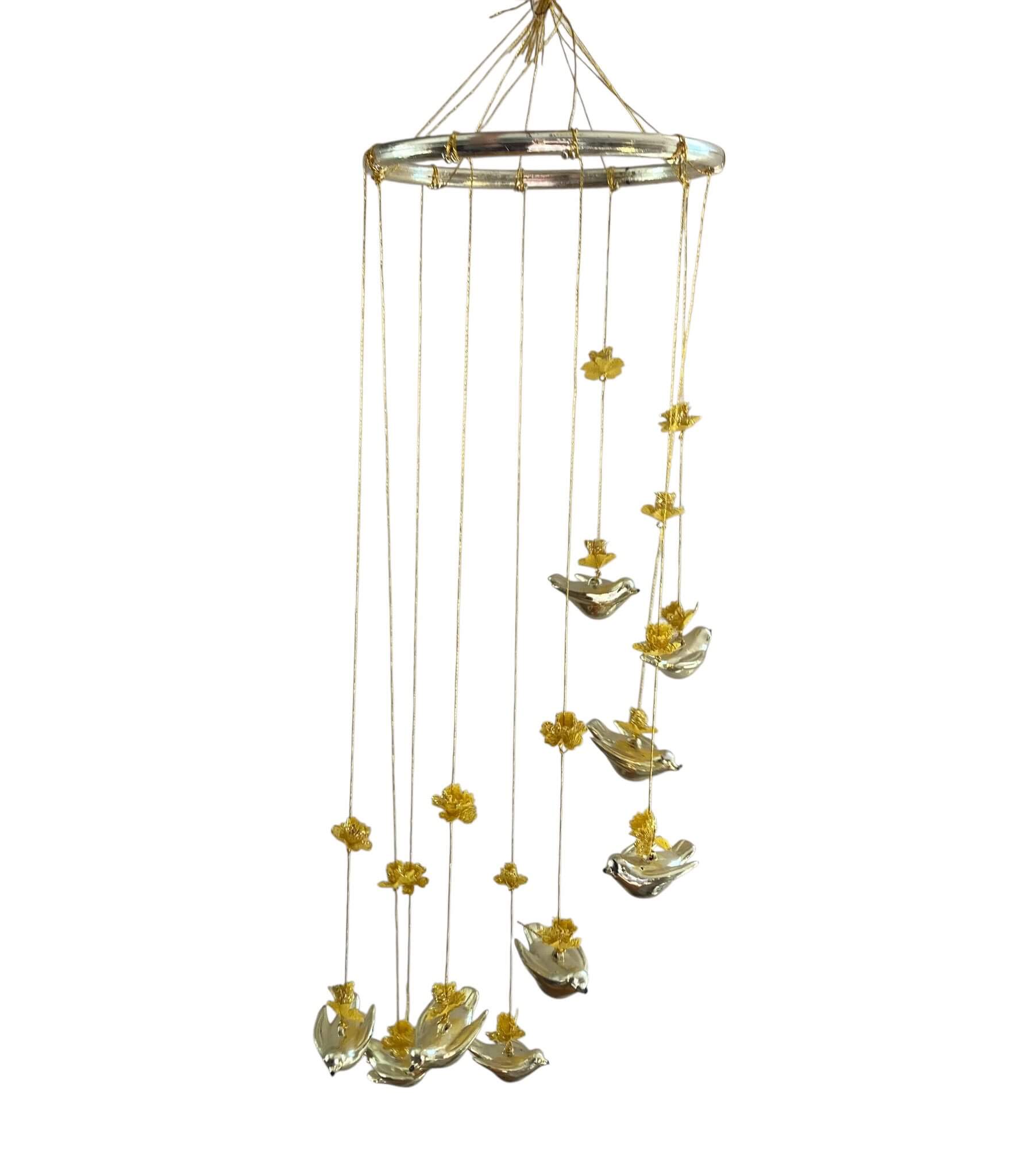Altså jeg syntes den er helt fantastisk. Solgt i Daells varehus i 80 erne. Det er en uro med fredsduer og små gule blomster, så bliver det da ikke hyggeligere.