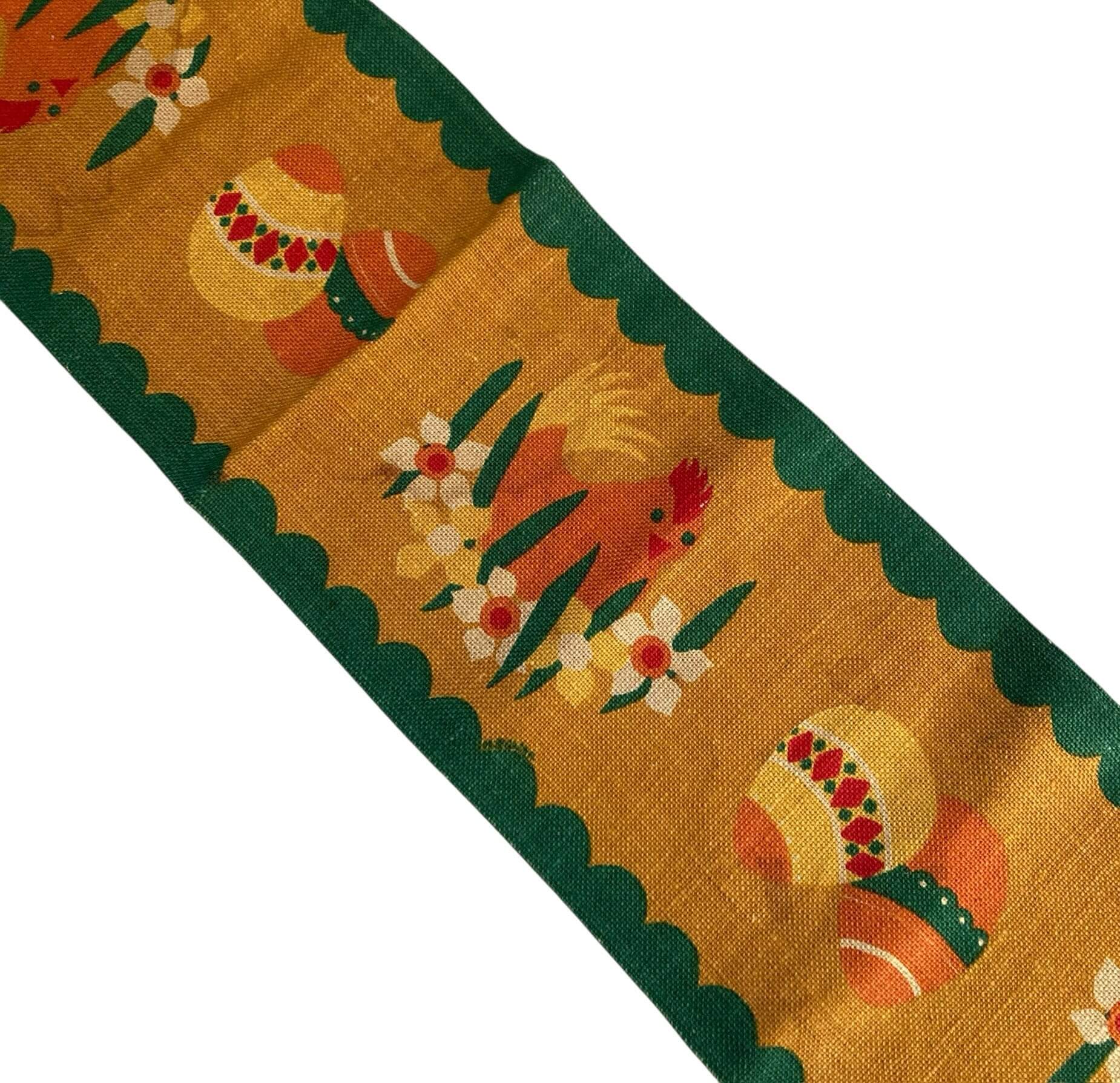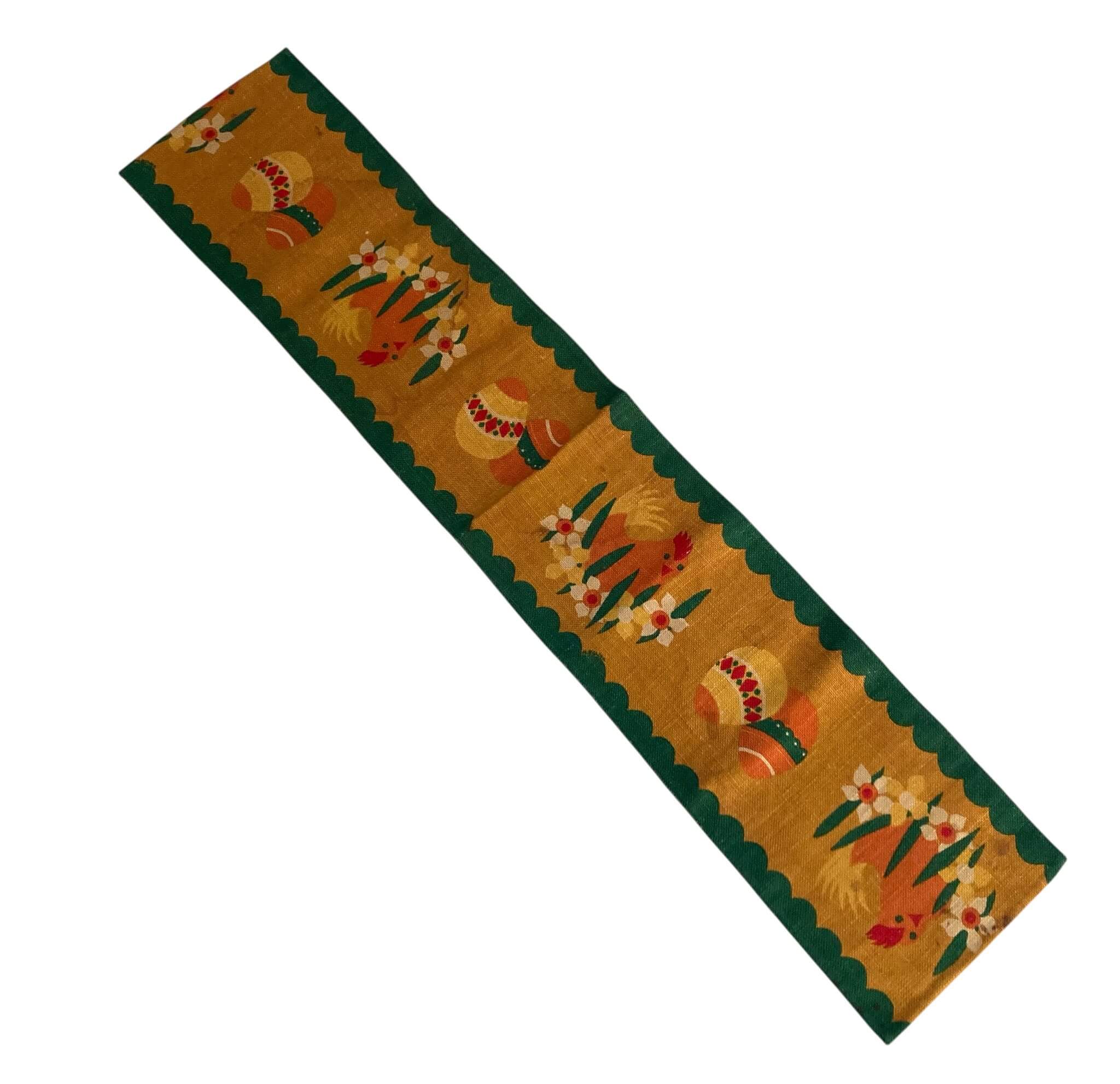 Den har de sødeste farver og motiver denne gamle påskeløber, som måler 130 x 25 cm. Den har nogle skjolder og pletter, som ikke er forsøgt fjernet (jeg ved simpelthen ikke hvordan man behandler bemalet jute, så prisen er sat derefter.