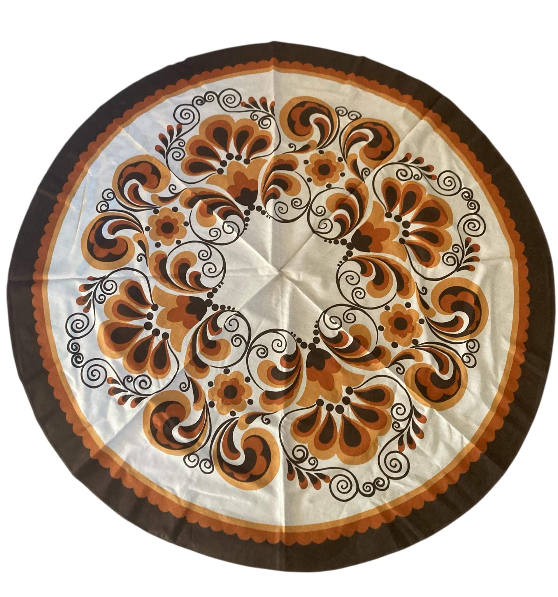 Stor flot blomstret dug, som måler 144 cm Ø