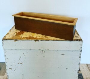 Tjek den her. I teak træ, så velholdt til at stille i vindues karmen ( skal have en indsats) den måler 52 cm B, 13,5 cm H og 14 cm D. 250kr stk.