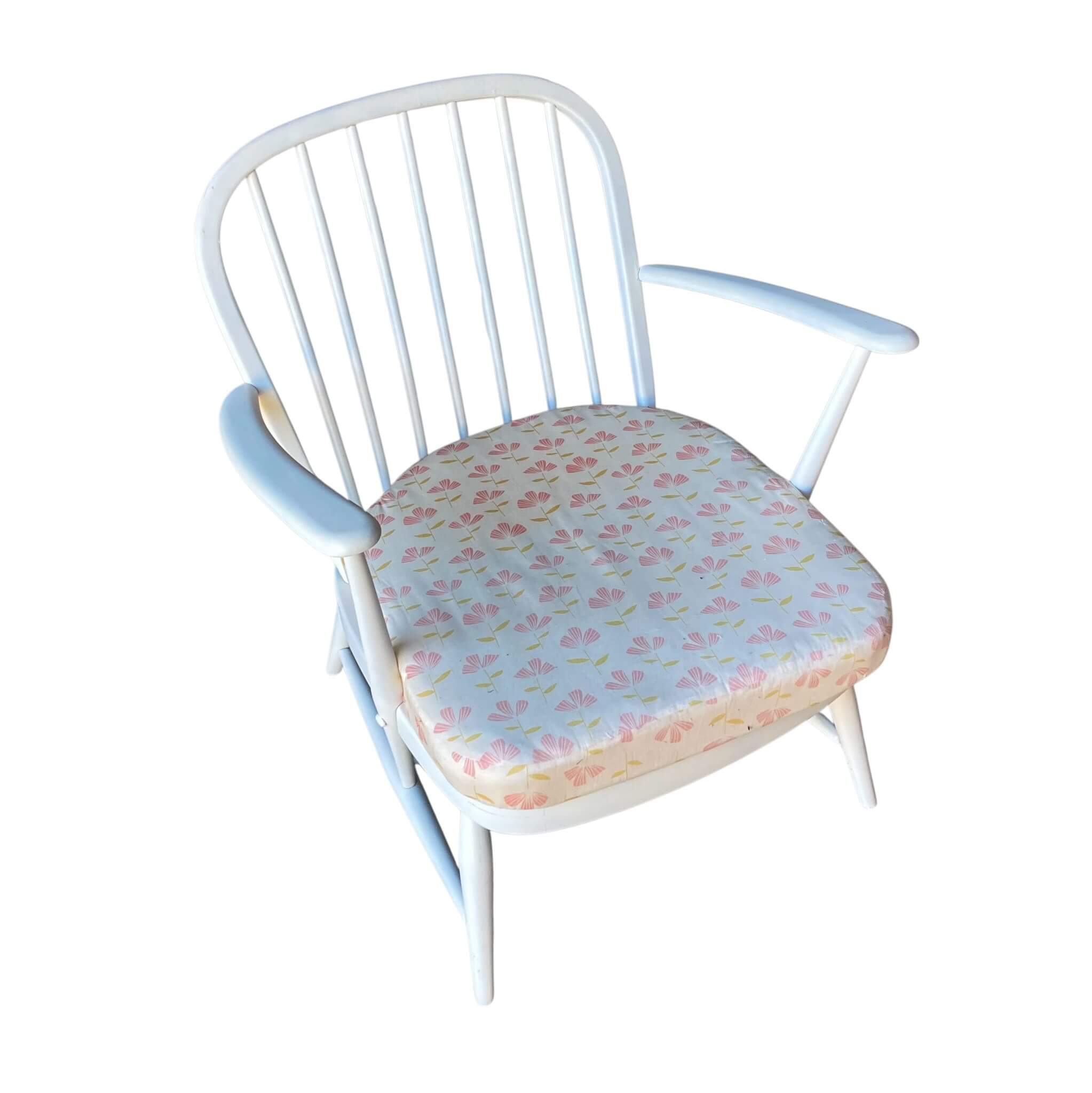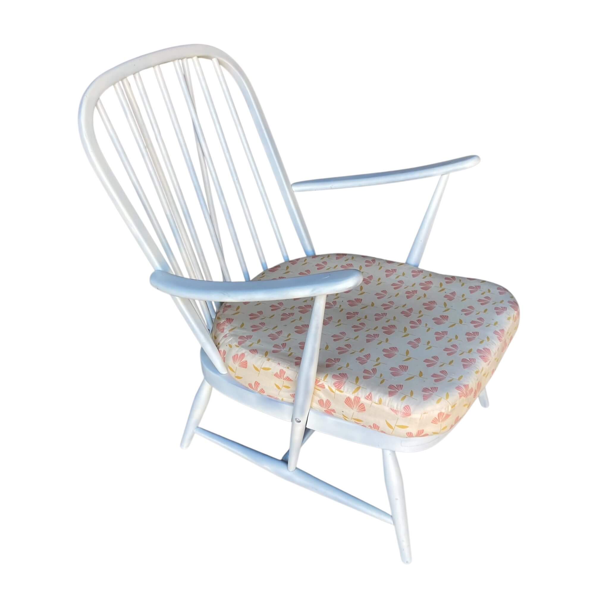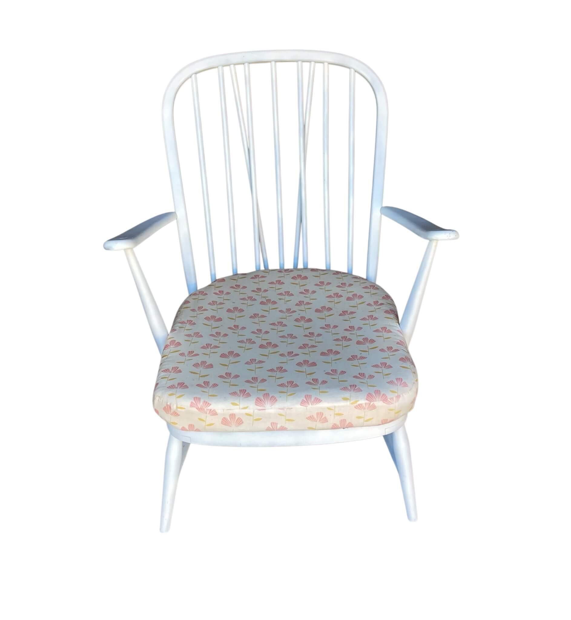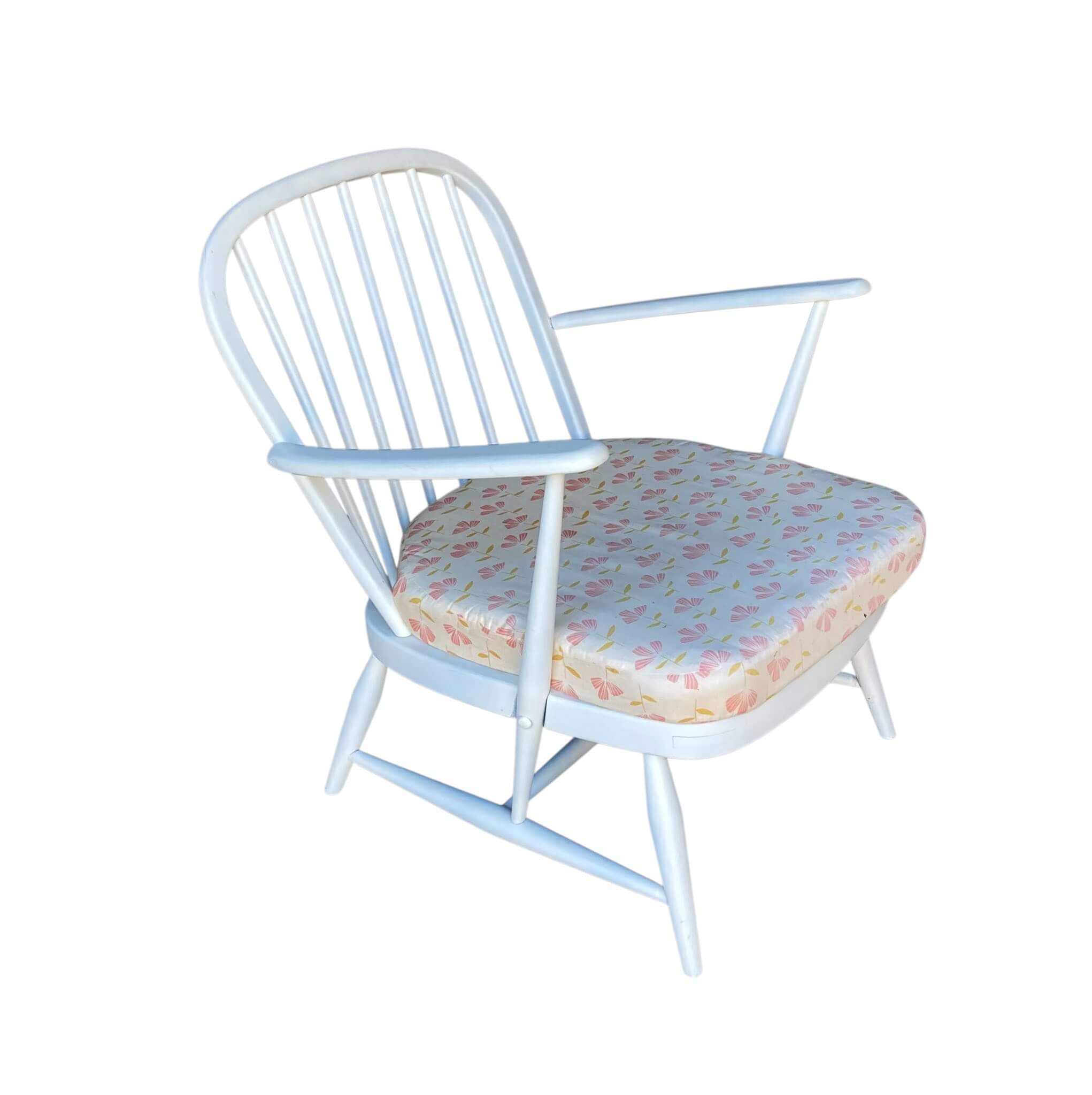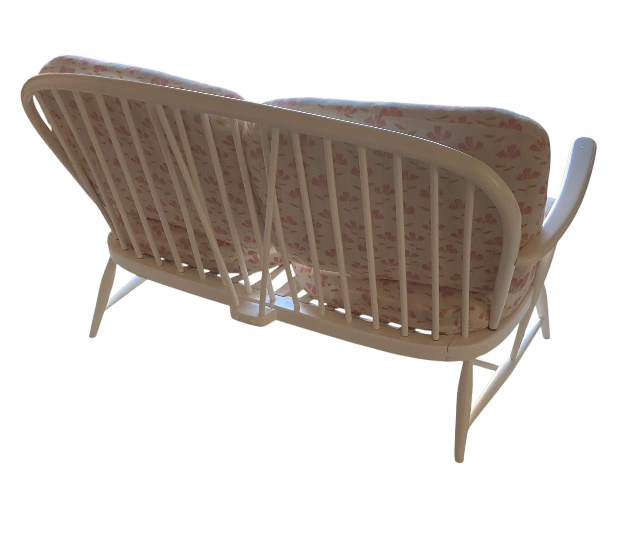 Vintage Ercol Set Windsor 203/2 This set has taken me 4 years to assemble. It consists of a 2 seater sofa model 203/2, a high-back armchair and a low-back armchair designed by Luciano Ercolani in 1957 for his own factory Lions in England. It is painted white, can use a tuch up, and the sofa should have new girths. I have had cushions sewn for the set. It really is a gem. The kit is not shipped, can be picked up or delivered for a fee.