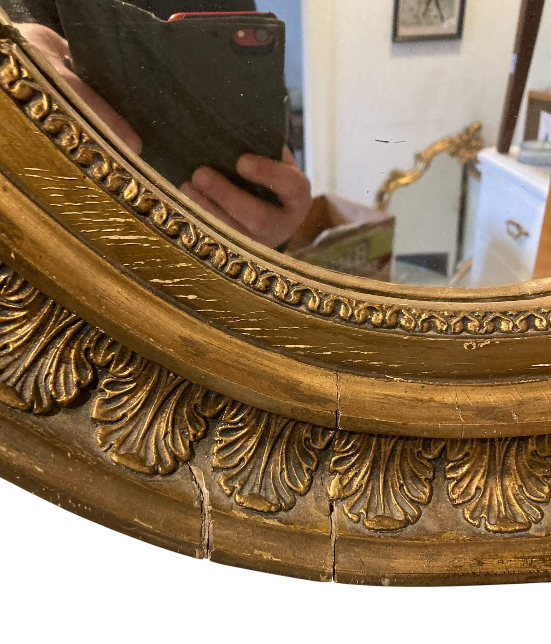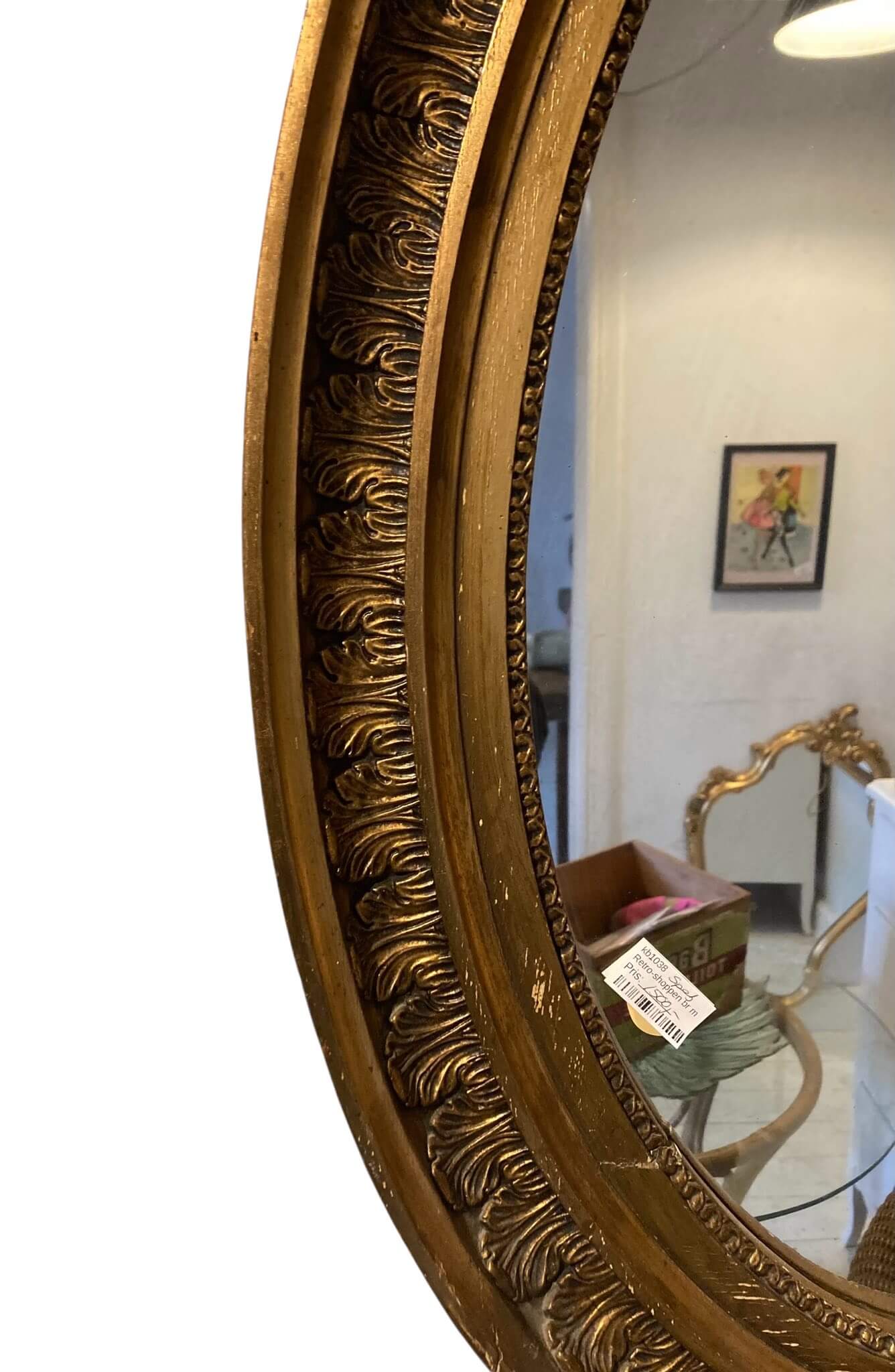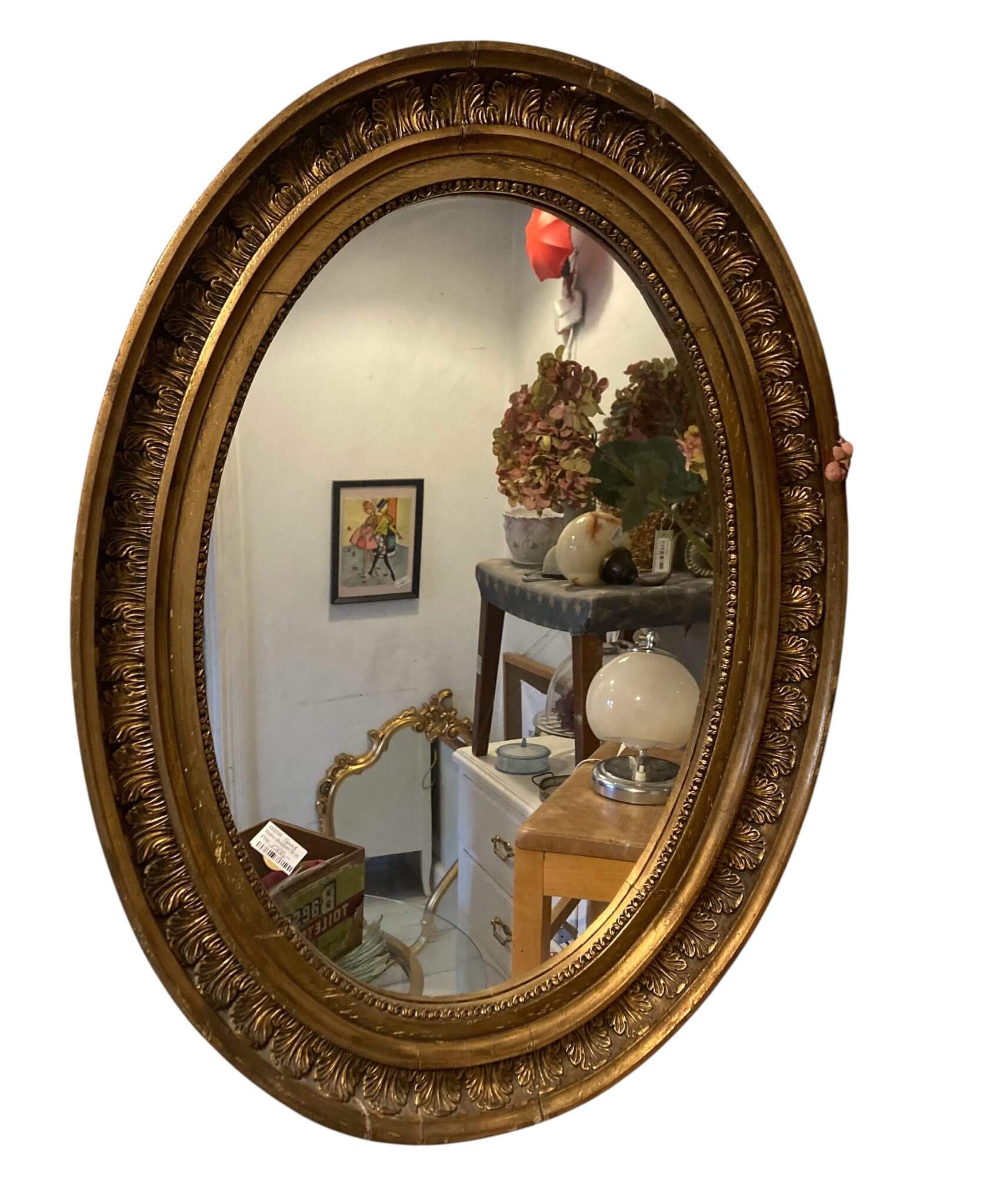 Gammelt ovalt guldspejl , der måler 80 x 60 cm.