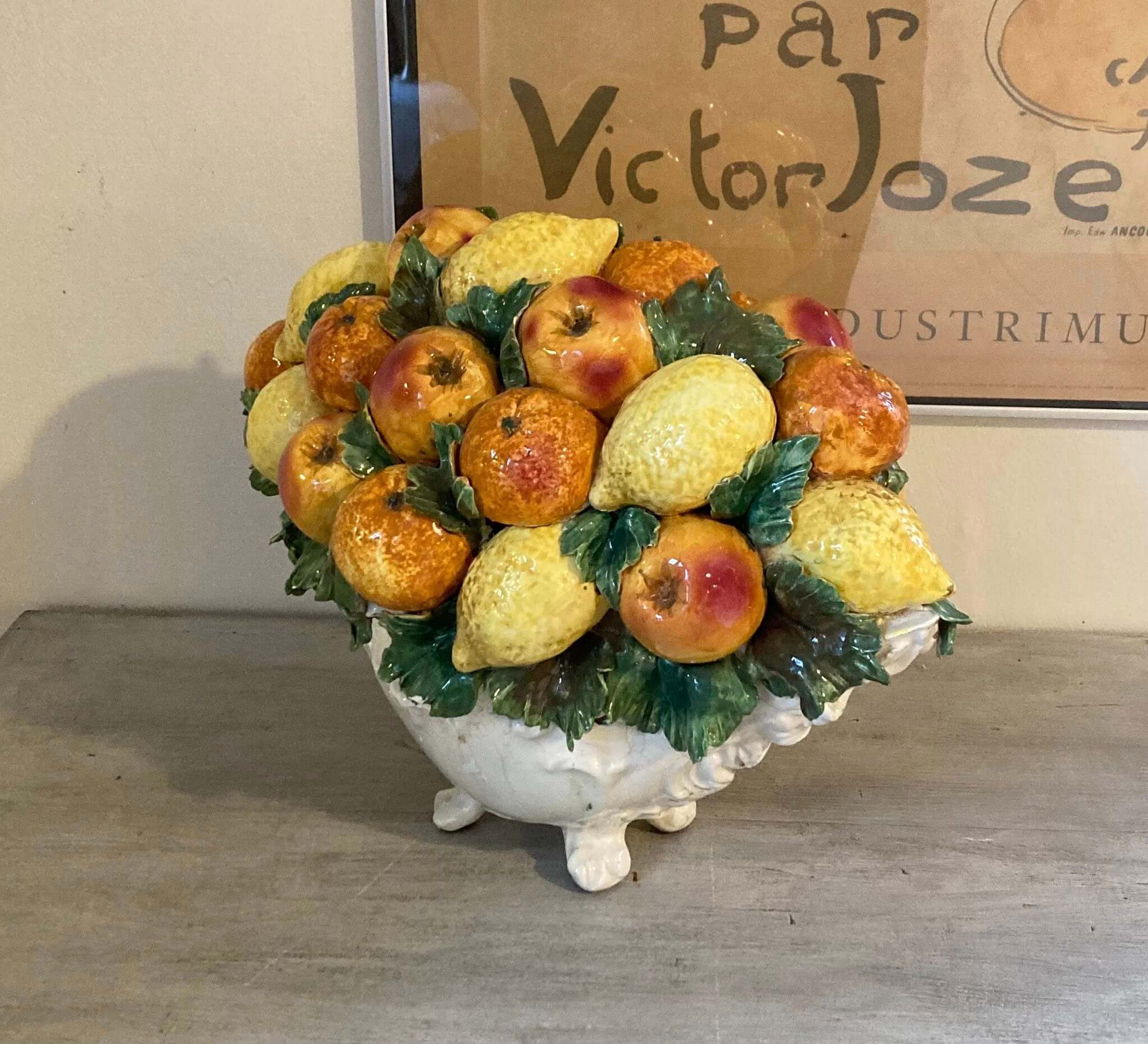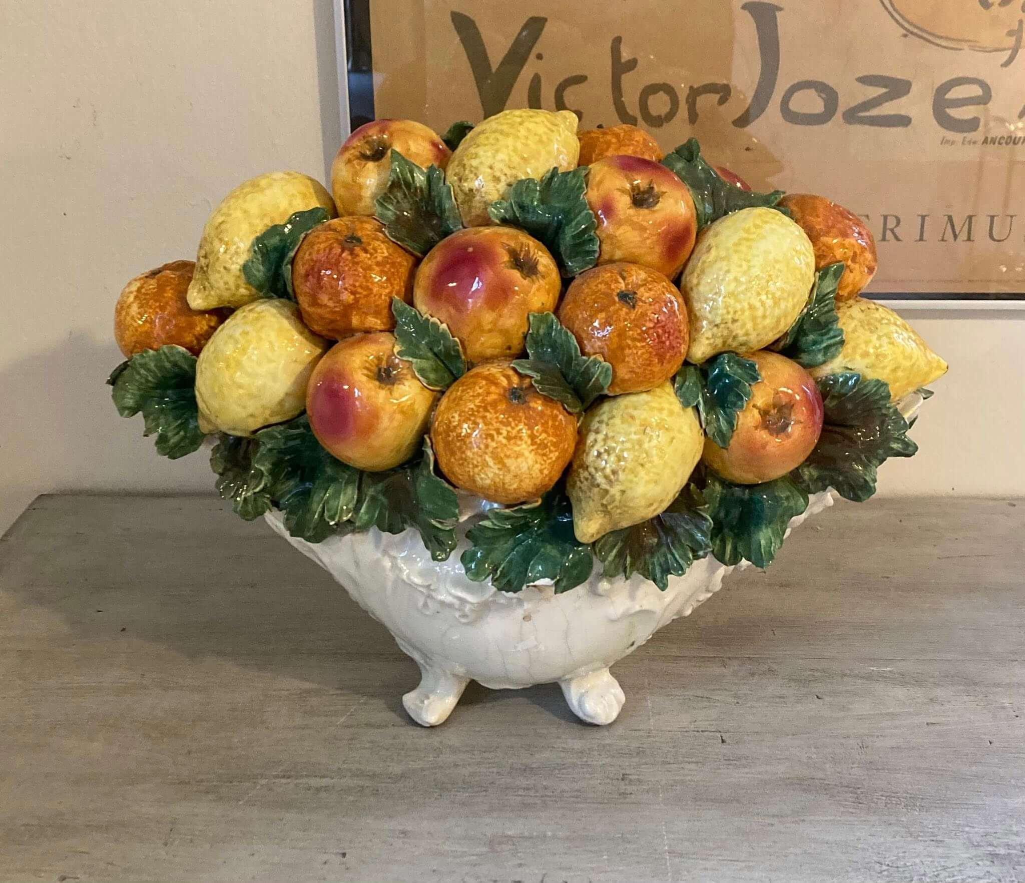 Denne meget store borddekoration i porcelæn har en del år på bagen og har derfor knubs, men det gør den ikke mindre faaantastisk. Den måler Længde 48, højde 37 cm, så den skal have godt plads..men det fortjener den også