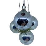 4 stk gamle ( bemærk de lidt lange halse og formen på kuglerne) sølv kugler. Der er ikke mønster på det er genskin af baggrunden i kuglerne. Prisen er for alle 4.