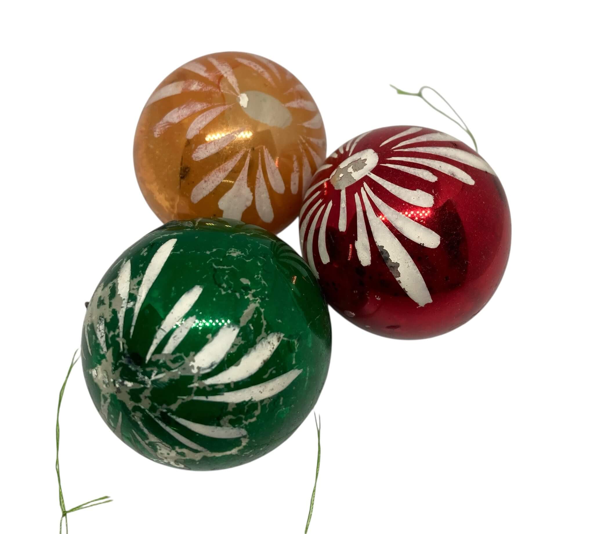tre stk. fine kugler med patina i forskellige farver. prisen er for alle 3