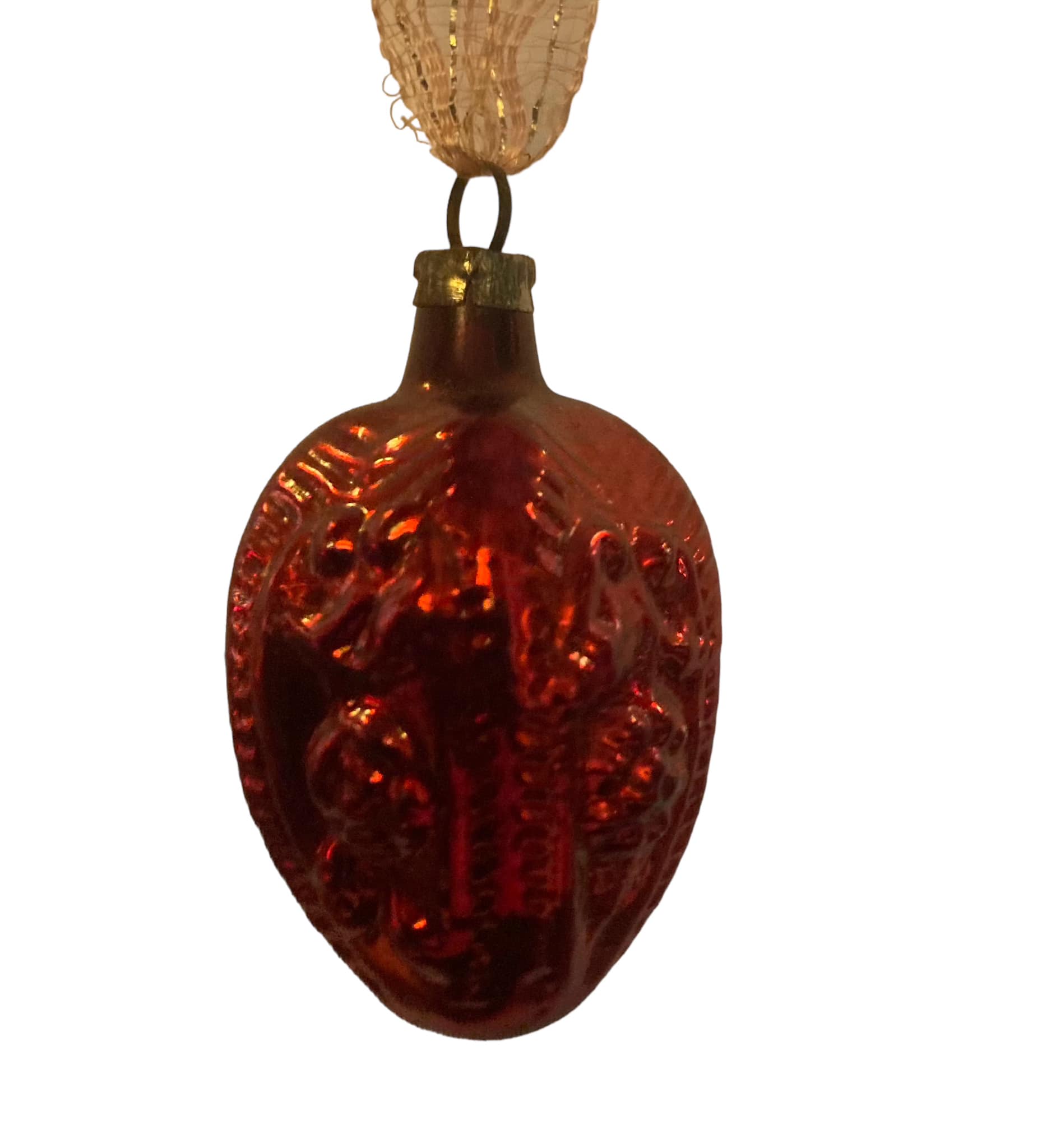 Vintage Julekugle no 152. Sjovt formet, måske en nød. rød gammel julekugle.