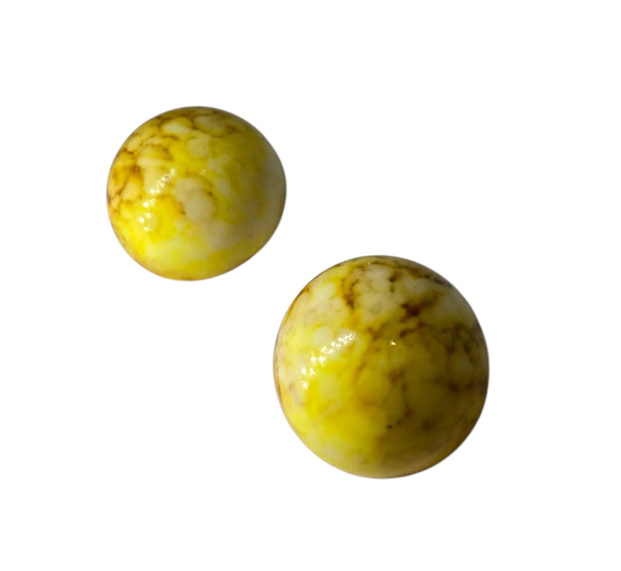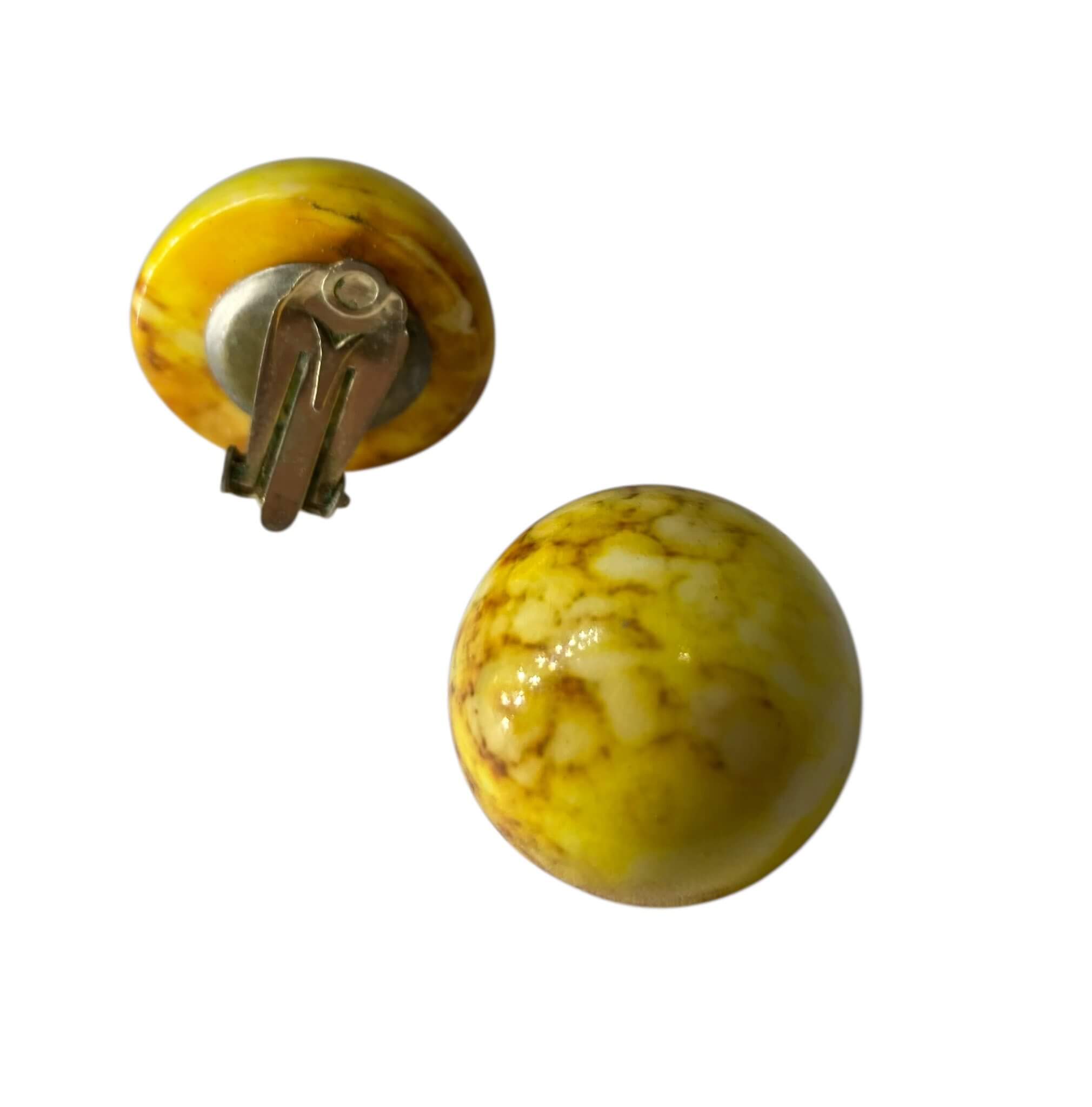 Runde marmorerede gule øreclips i plastik, til påske måske.