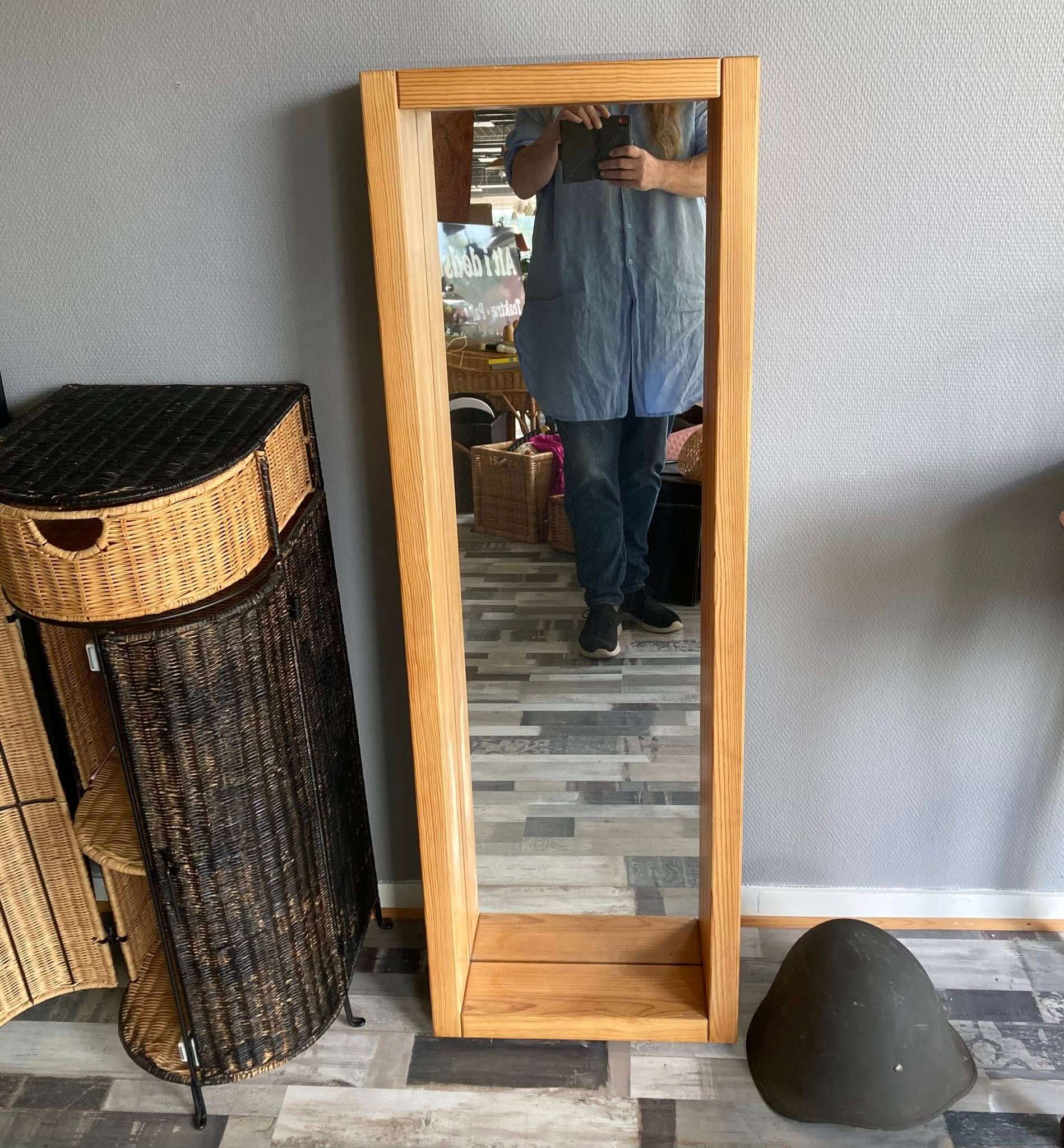 Det er ret så fedt, rustikt og tungt denne vintage spejl, tror det er fra 80 erne. Selve rammen er så dyb, så den kan bruges som en hylde. Det måler ca. 120 cm H og 50 cm B.